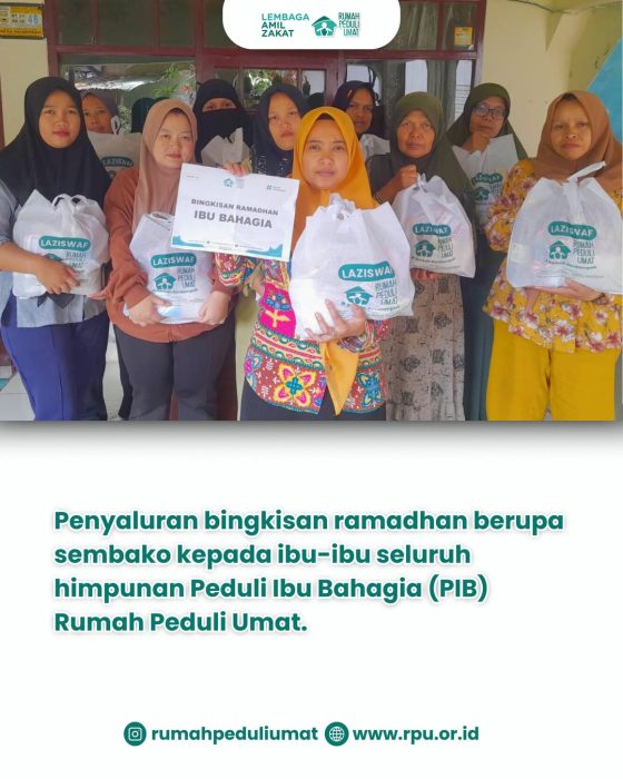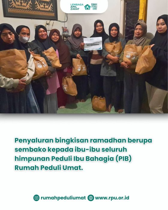 Alhamdulillahirobbil ‘alamiin, telah dilaksanakan penyaluran bingkisan Ramadhan pada bulan Ramadhan kemarin untuk ibu-ibu himpunan PIB (Peduli Ibu Bahagia) Rumah Peduli Umat.