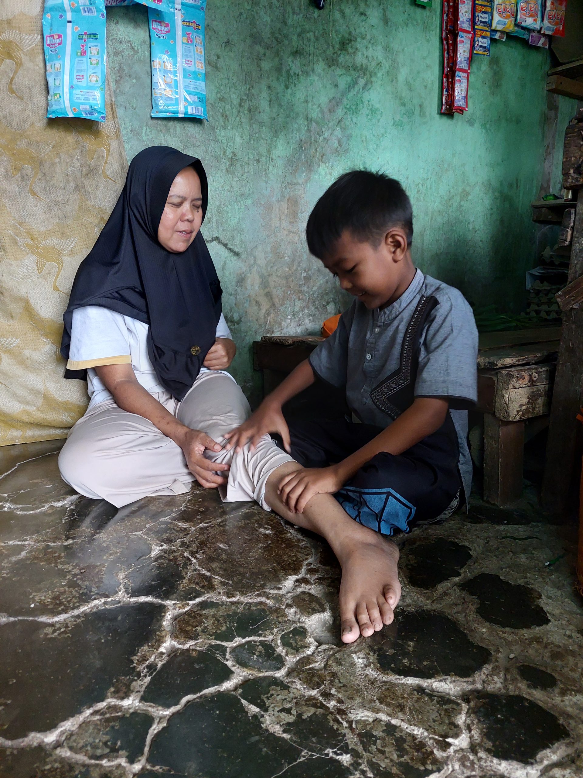 Sang Ayah Didin Kusdinar (46 tahun) menderita tunawicara, kesehariannya hanya menjadi kuli pasir dengan penghasilan yang tak tentu.
